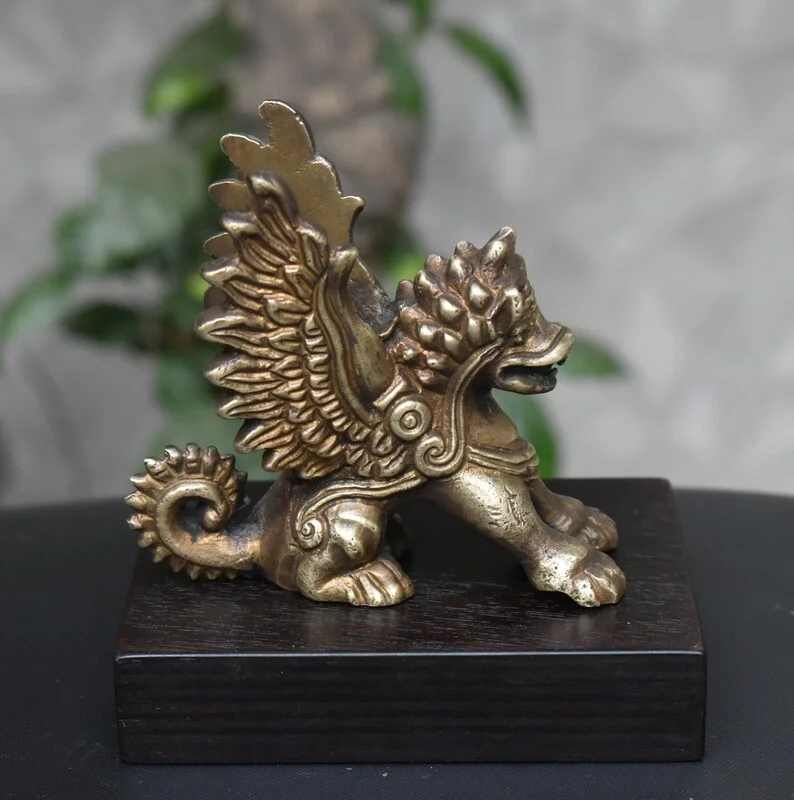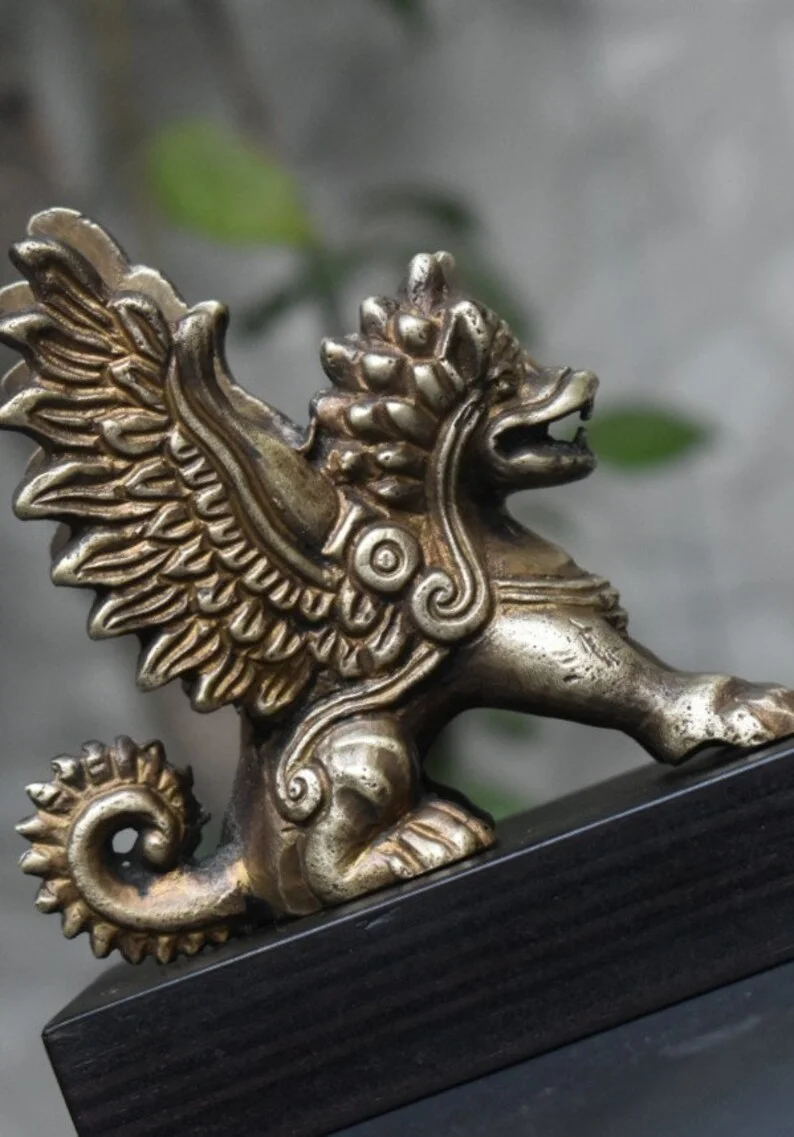 SAGV, Garuda Lion Mythical Beast Bali Sculpture, Brass Antique Finish.