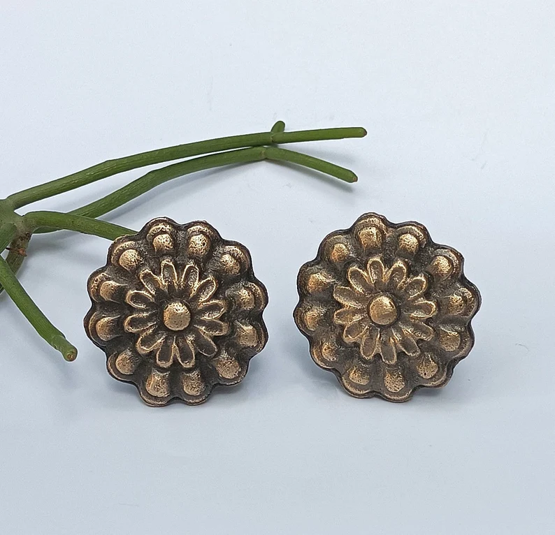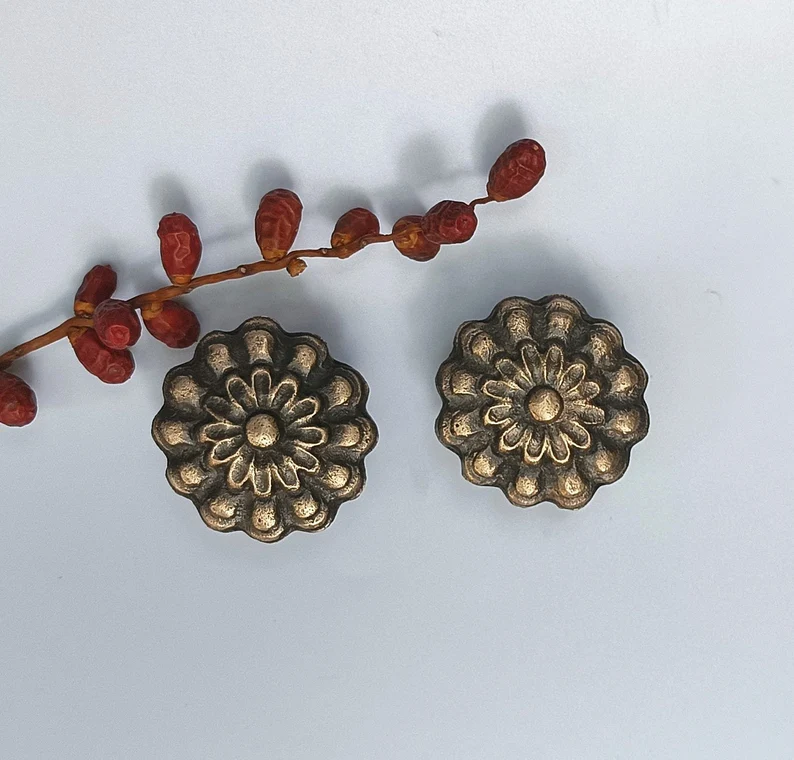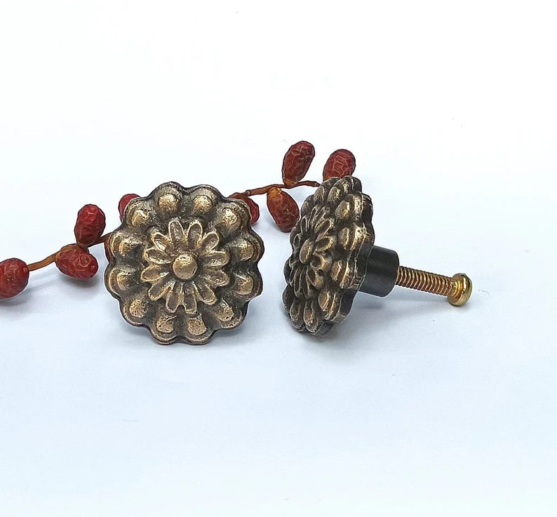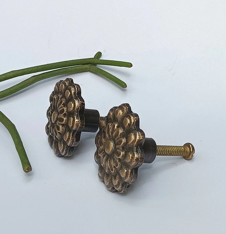 Classic Carved Brass Knob – Timeless Front Design for Drawers, Cabinets and Door, Set of 6