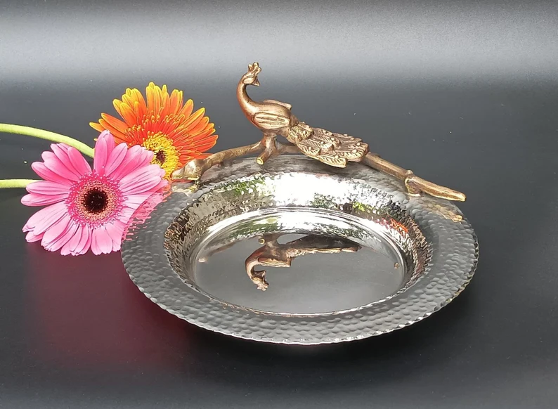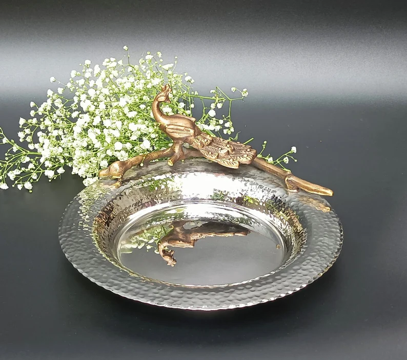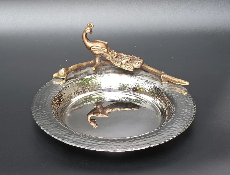 Peacock Nut Dish / Trinket Tray, Decorative Dish, Steel Tray, Home Décor And Gift Tray.