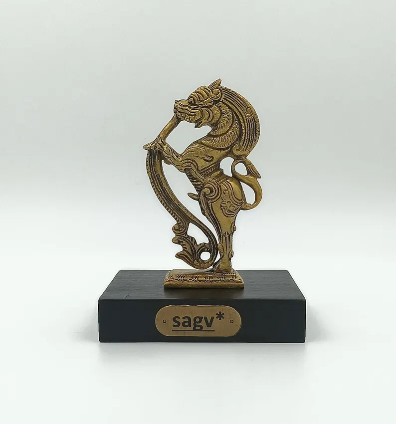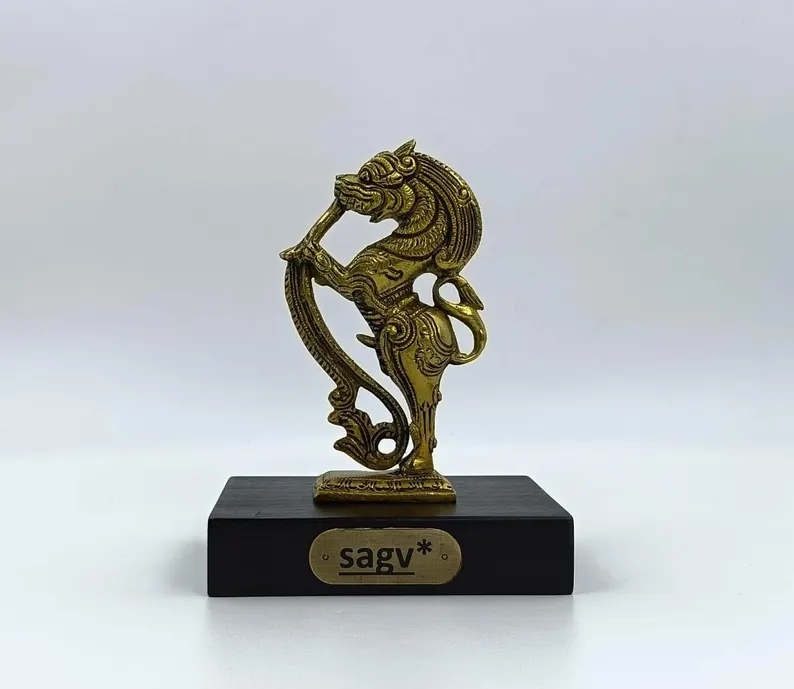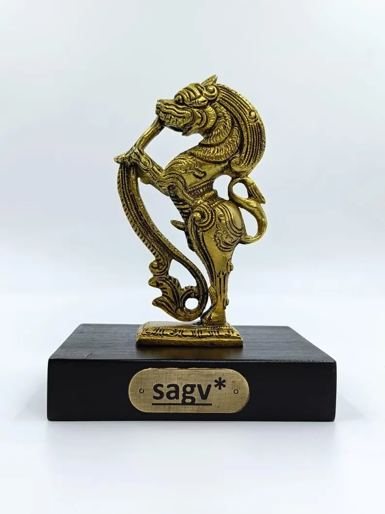 SAGV, Brass Yali Sculpture – Intricately Crafted Mythical Lion Guardian Idol for Home Decor, Traditional Art, and Spiritual Ambience.