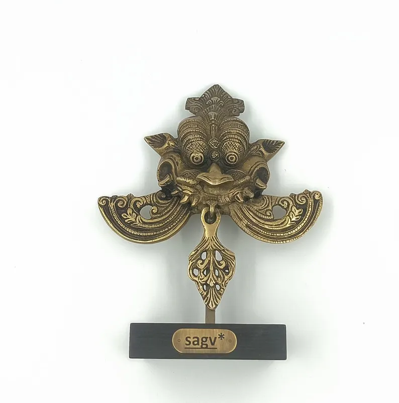 This handcrafted Kirti Mukha sculpture, inspired by ancient Indian mythology, symbolizes protection and divine energy. Traditionally placed at entrances, it wards off negative forces. Made with intricate detailing in brass, it blends spirituality with art, making it a perfect piece for home decor, temples, or vastu-inspired interiors.
