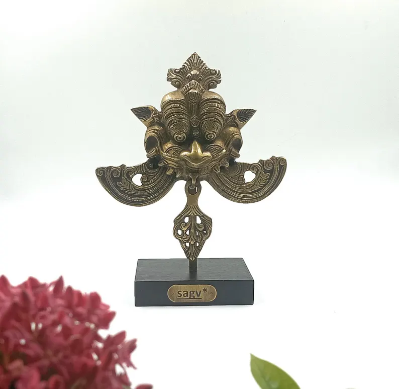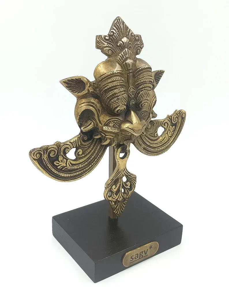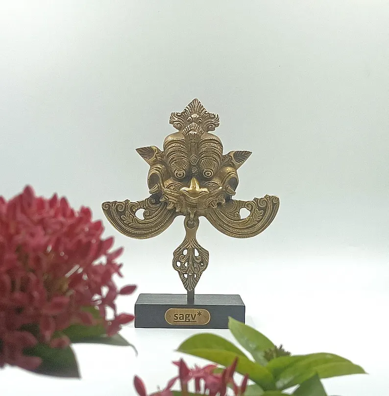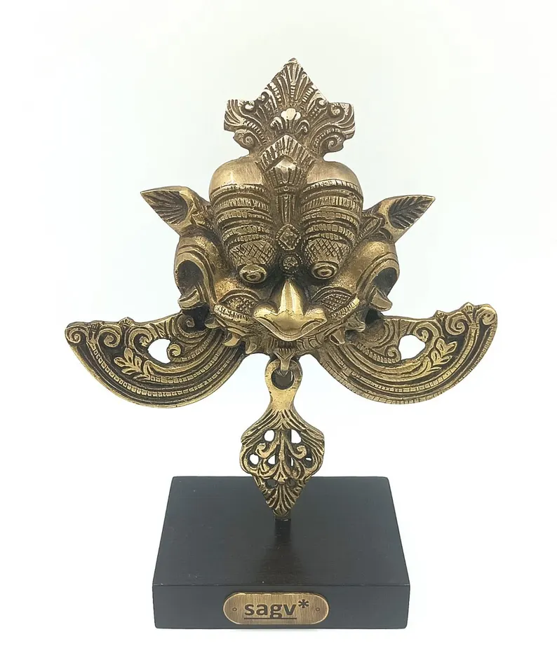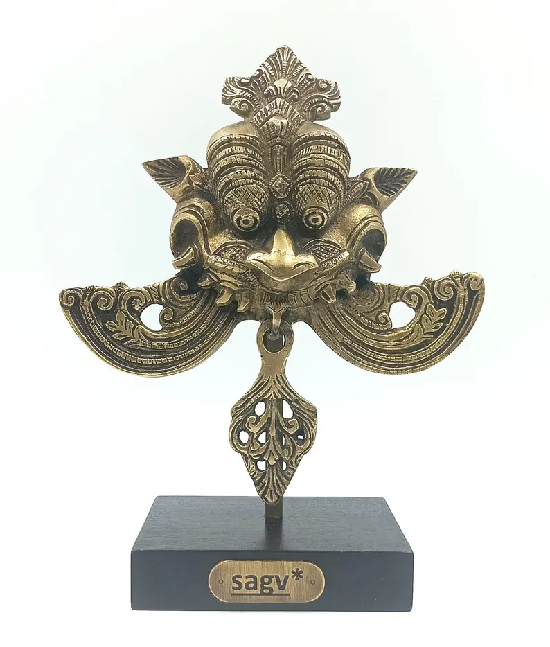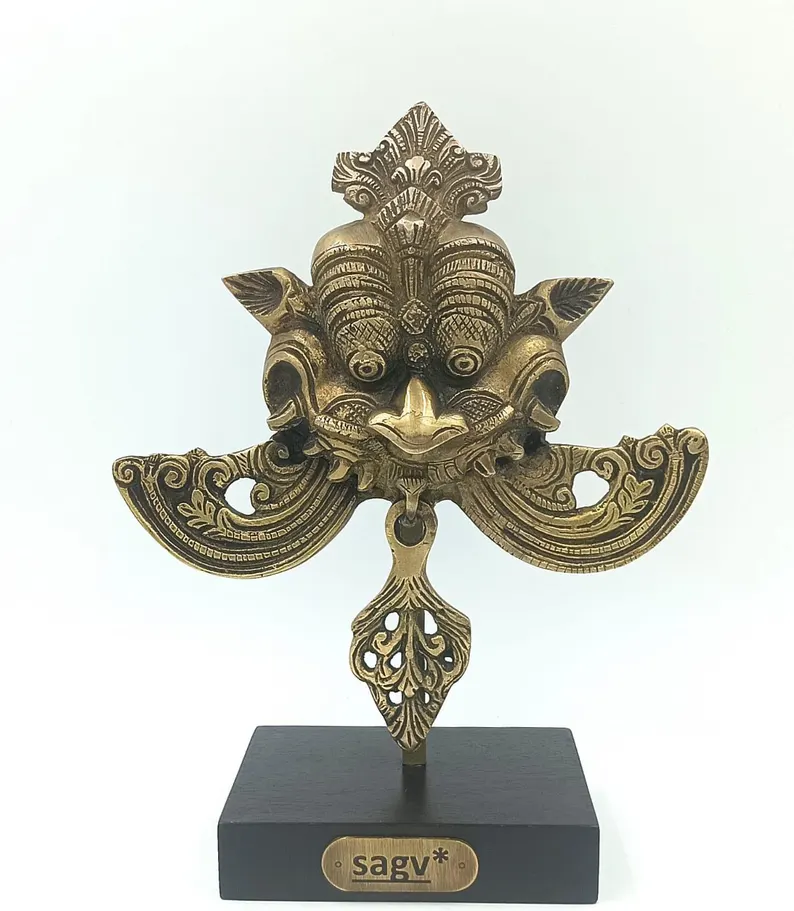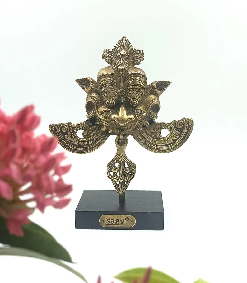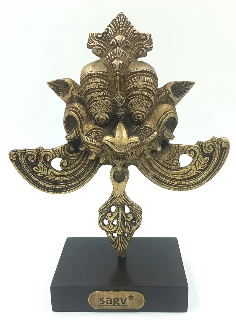 Kirti Mukh Brass Sculpture on Stand, Guardian Art Inspired by Ancient Indian Motifs, Brass Antique Finish.